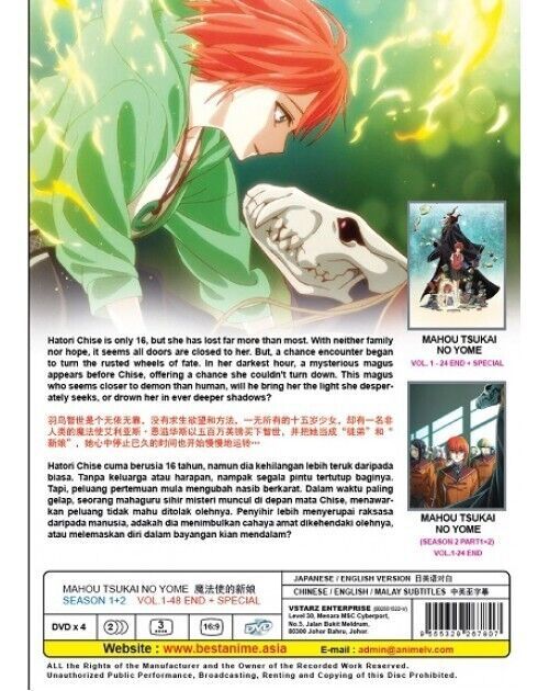 MAHOU TSUKAI NO YOME SEASON 1-2 VOL.1-48 END + SP DVD ENG DUB SHIP FROM USA