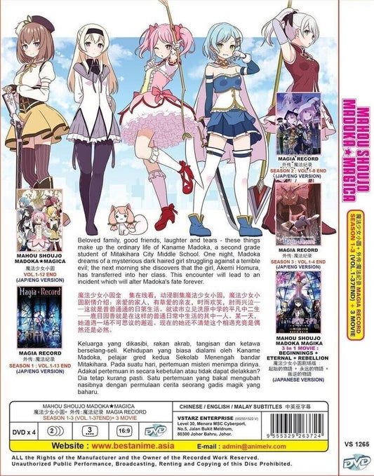 MAHOU SHOUJO MADOKA MAGICA SEASON 1-3 (VOL 1-37 END) + 3 MOVIE SHIP FROM USA