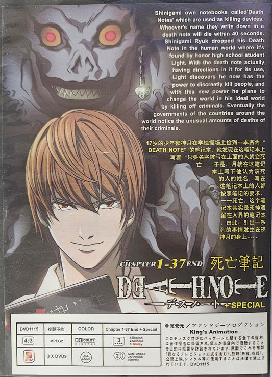 DEATH NOTE THE COMPLETE SERIES Ep 1-37 Anime COLLECTION 4-DVD SET, BEST ENGLISH