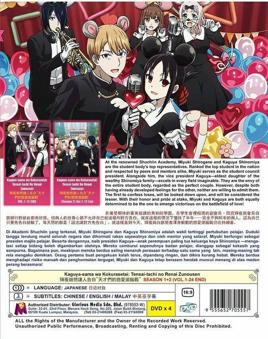 Kaguya-Sama Wa Kokurasetai Tensai-Tachi No Renai Zunousen Sea1+2 Ship From USA