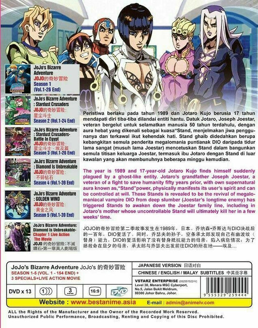 JoJo's Bizarre Adventure Season 1~5 +Live Movie English Subtitle Ship From USA