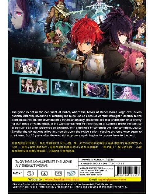 TA GA TAME NO ALCHEMIST THE MOVIE DVD ENGLISH SUBS REGION ALL SHIP FROM USA