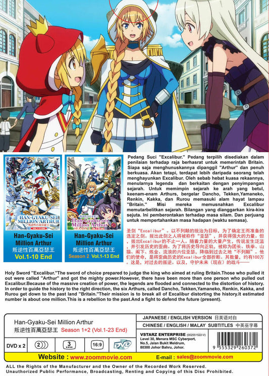 Han-Gyaku-Sei Million Arthur DVD (Season 1+2)(Vol. 1-23 end) English Dubbed